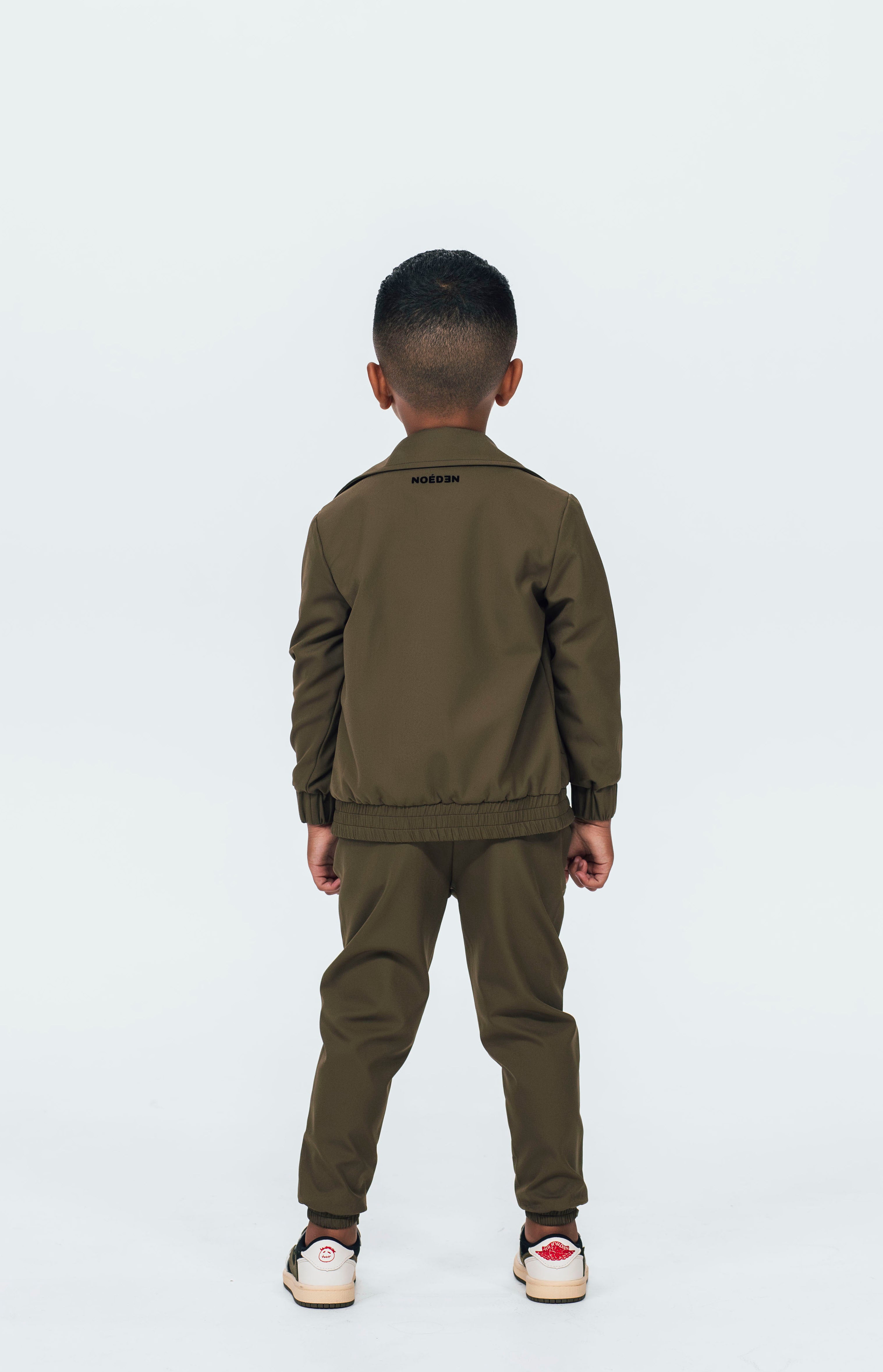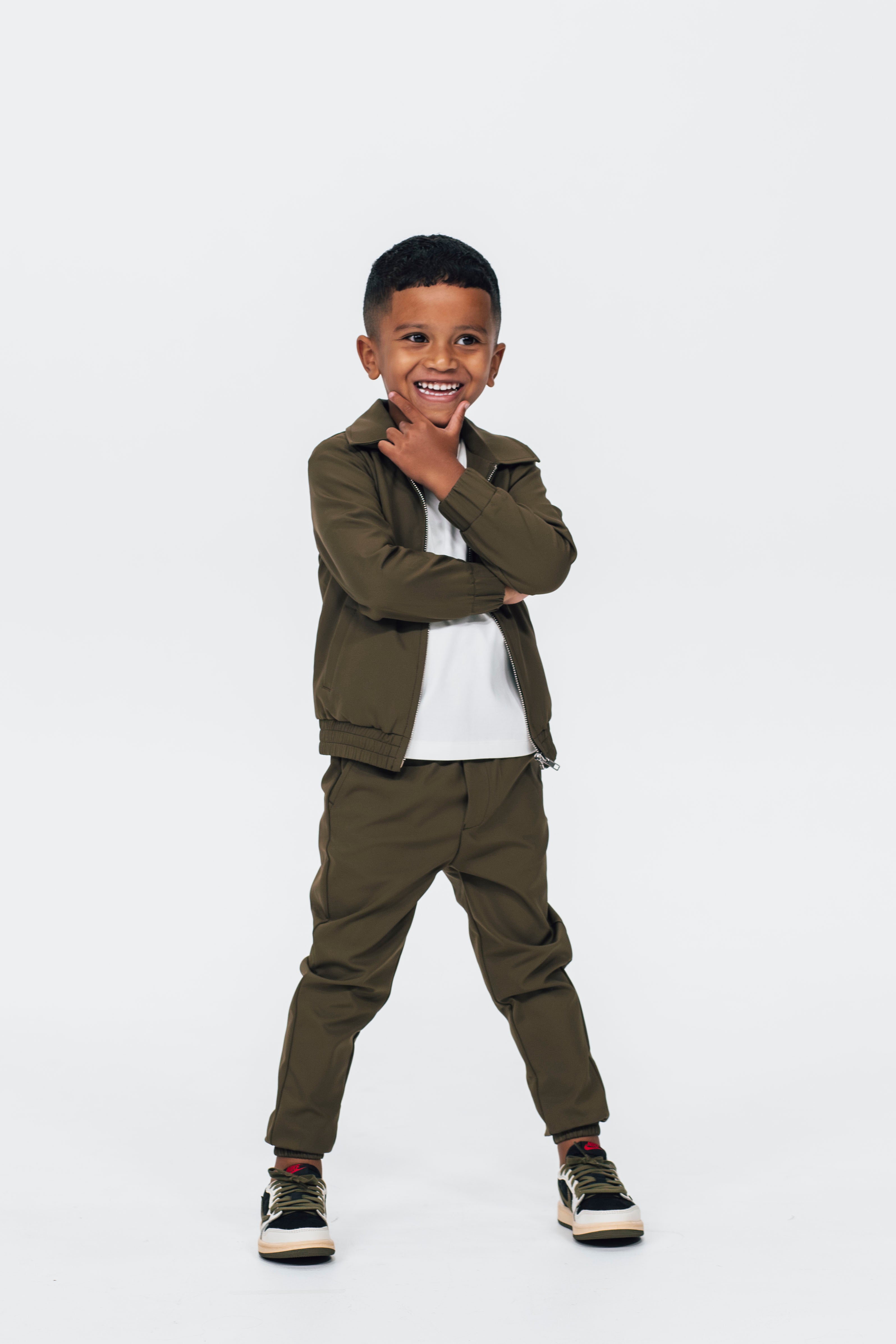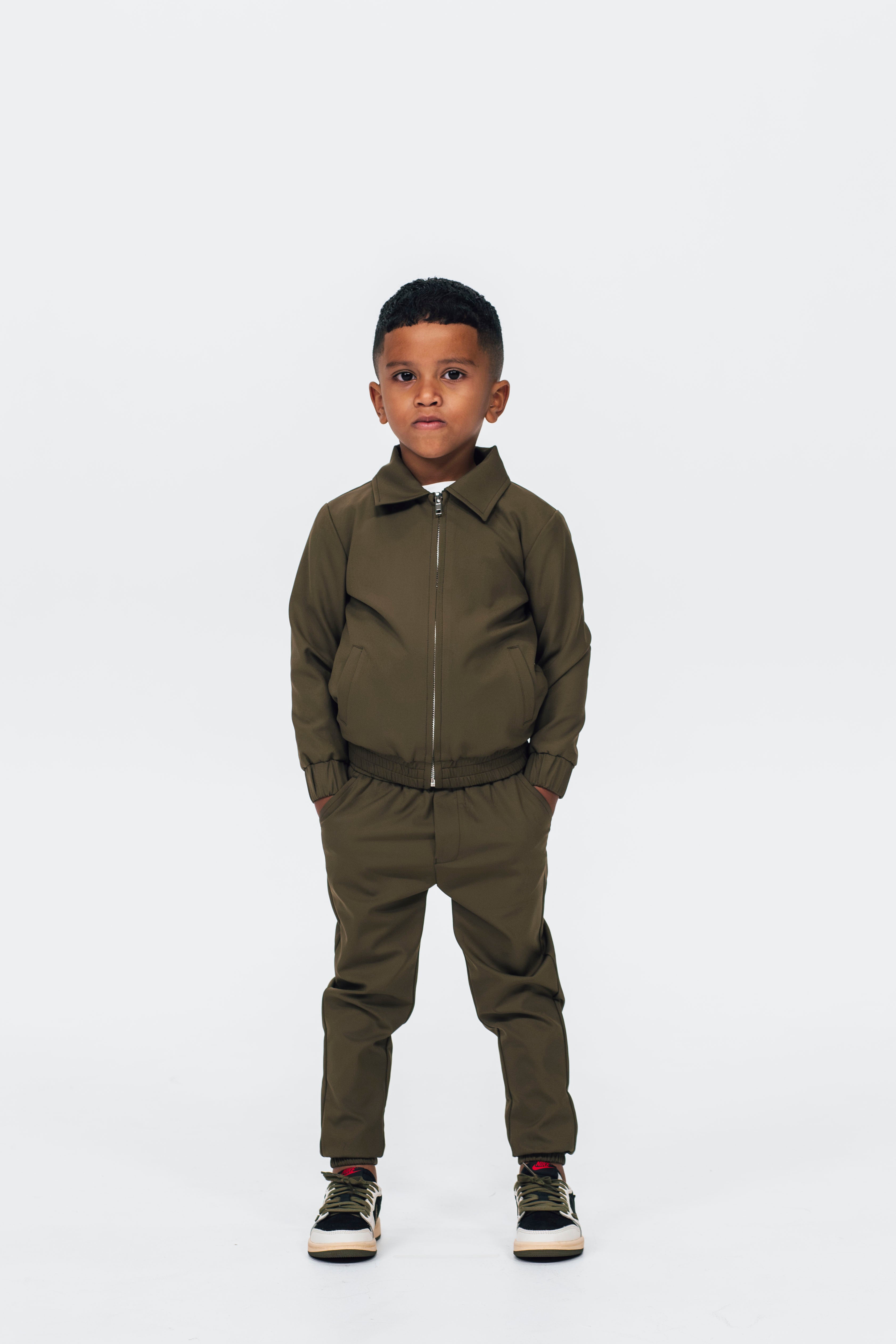 Een moderne klassieker met een sportieve twist. Deze twee-delige set bestaat uit een jasje met ritssluiting en opstaande kraag, gecombineerd met een bijpassende broek met elastische tailleband en boorden. Stijlvol én comfortabel perfect voor elke gelegenheid.